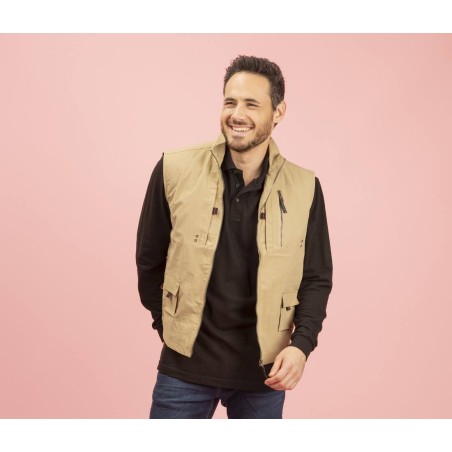 7 poches extérieures et 1 poche intérieure. Doublure filet. Coupe-vent.