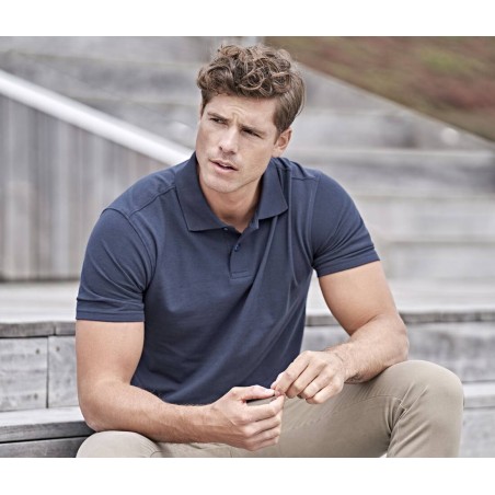 Mélange coton bio/polyester. Maille piquée. Plaquette 2 boutons.
