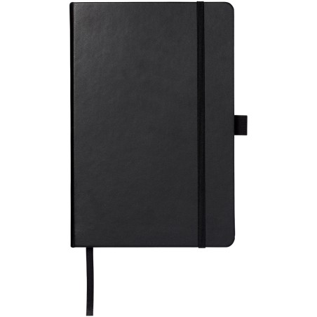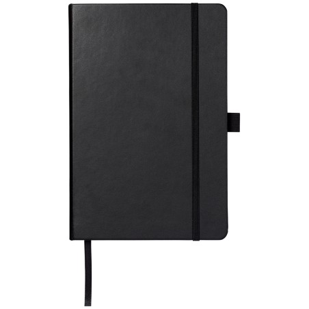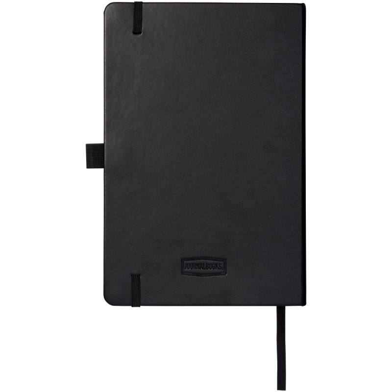 Cahier A5 (14,2 cm x 21,4 cm) en cuir PU avec élastique, ruban marque-page, boucle à stylo et poche arrière en accordéon. Comprend 96 feuilles de papier crème lignées en 70 g/m² et est livré dans une pochette blanche Journalbook.