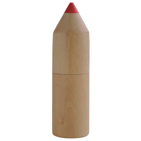 12 crayons de couleurs dans boîte cylindrique en bois en forme de crayon. Marquage indisponible sur les composants.