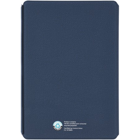 Le porte-documents Notu certifié RCS est partiellement fabriqué à partir de polyester recyclé post-consommation, ce qui en fait un choix plus durable, puisqu'il contribue à réduire l'utilisation de matières premières vierges. Il est doté d'une fermeture aimantée, d'une pochette accordéon et de 64 feuilles lignées de couleur crème avec du papier recyclé de 80 g/m2 provenant de sources durables.