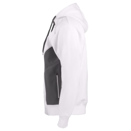 Blouson à capuche full zip - Bi-matière molleton + softshell s/côtés pour un suivi des mouvements du corps - 320 g/m2 - Confort optimal - Surpiqures contrastées - bords côtes aux poignets et à la taille - Poches latérales zippées