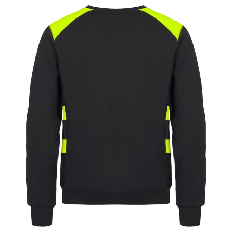 Sweatshirt unisexe à col rond contrasté - visibilité accrue. 100% polyester recyclé au toucher coton - 1 poche latérale cachée zippée - Poignets et ourlet du bas en tissu côtelé - étiquette facilement amovible
