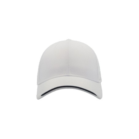 Casquette de baseball 6 panneaux en polyester jacquard avec piping contrastant sur la visière et Velcro long avec boucle en plastique à l’arrière.. 6 PANNEAUX, Polyester, VISOR CURVED, PIPING, FERMETURE PAR VELCRO, 4 COUTURES SUR LA VISIERE. Main fabric: 100% polyester