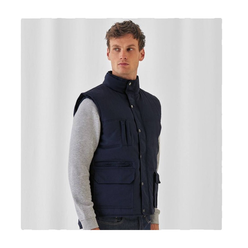Couche extérieure : 65% polyester / 35% coton. Doublure matelassée: 100% polyester épais pour un apport de chaleur supplémentaire. Fermeture zippée. Boutons pressions métalliques. 4 poches extérieures (dont 2 avec fermeture zippée). 2 poches extérieures stylos. 1 poche intérieure pour portefeuille. Dos plus long que l'avant. Emmanchures coupe-vent avec cordon élastiqué et stopper.