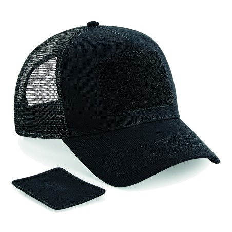 Panneau avant et visière 100 % coton, panneaux arrière en mesh 100 % polyester | Étiquette détachable | 5 panneaux design | Visière précourbée | Patch Rip-Strip™ interchangeable conçu pour la décoration | Fermeture en matière plastique à taille ajustable