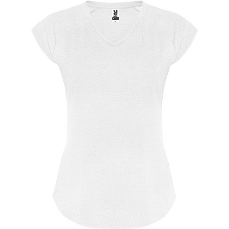 T-shirt technique multisport pour femme, manches courtes style raglan. Col V.Tissu polyester touché coton. Coupe ajustée.