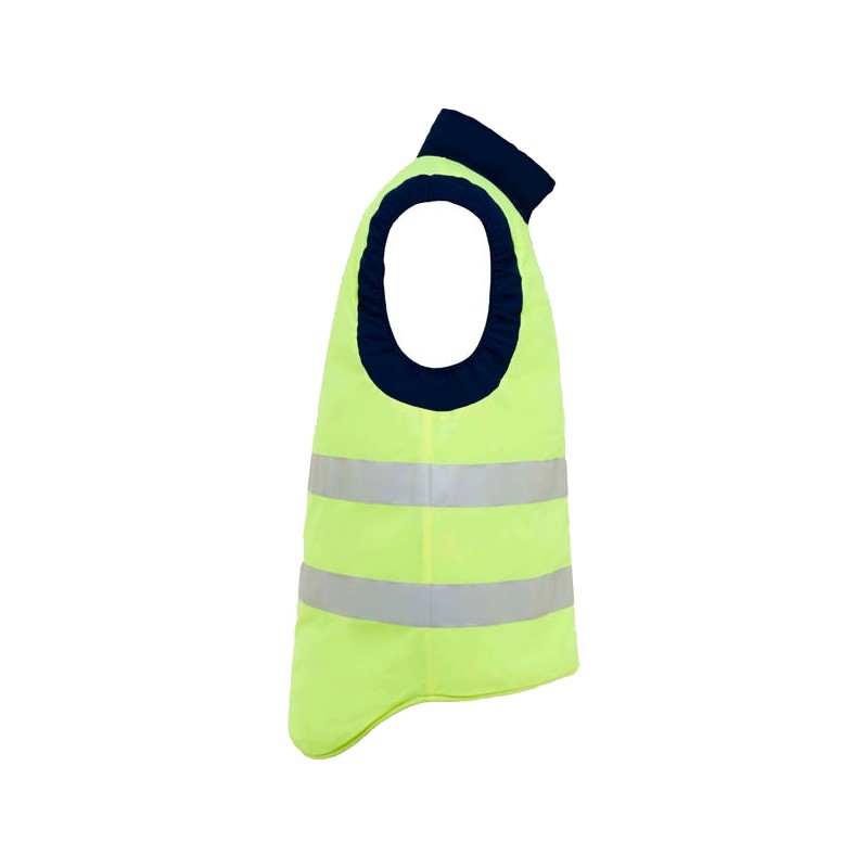 Gilet réversible multi-poches haute visibilité avec col montant.Gilet multi-poches.· Zip central avec tirette réversible.· Une poche extérieure pour portable sur le côté droit.· Deux poches avant avec soufflets et fentes latérales.· Deux poches pour stylos.· Poche zippée.· Coupe-vent aux poignets.· Ourlet arrière plus long.· Ajusteur élastique.Gilet haute visibilité· Couleur fluorescente.· Deux bandes réfléchissantes horizontales.